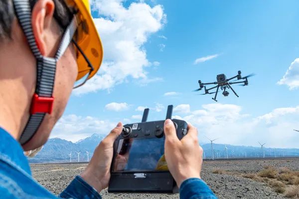 国网乌鲁木齐供电公司输电运检人员在达坂城片区220千伏达清泉二线开展无人机特巡,保障当地风电企业清洁能源可靠发电上网。王晋魁 摄