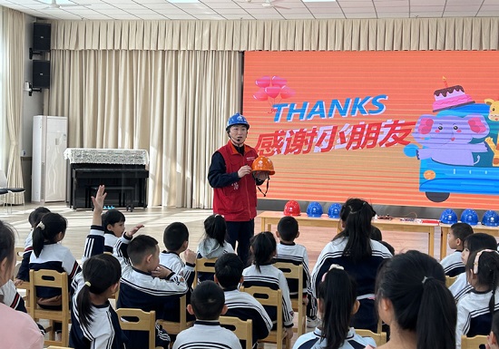 国网安徽马鞍山供电公司员工为马鞍山市龙泉中心学校小学生科普安全用电知识。